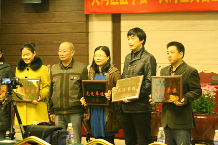 (图)李君琳院长(右一)代表医院接收"2010-2011年度医德医风先进单位"荣誉