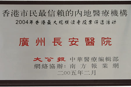 广州圣丹福医院被评为“二00四年香港市民信赖的内地医疗机构”
